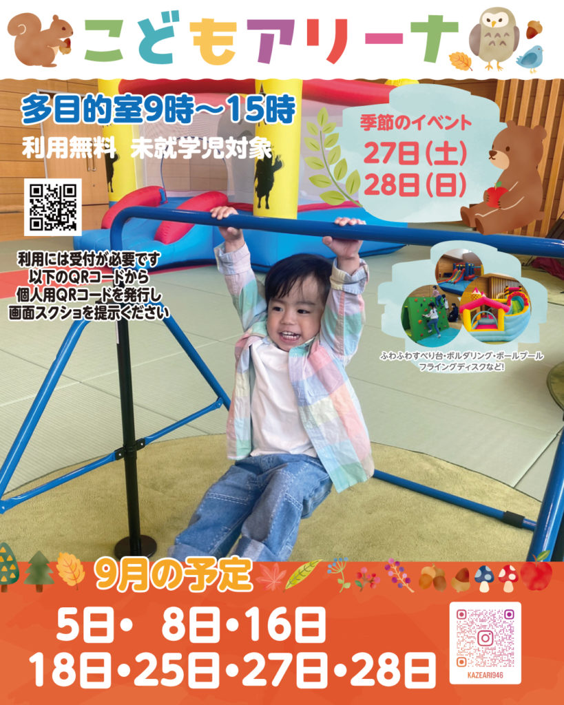 ・利用無料 ・未就学児対象 ・多目的室 9時~15時