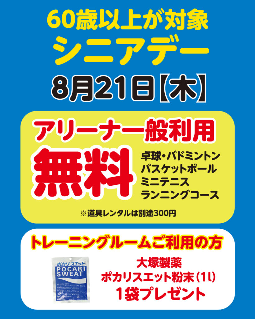 60歳以上の方は、アリーナ一般利用が無料!