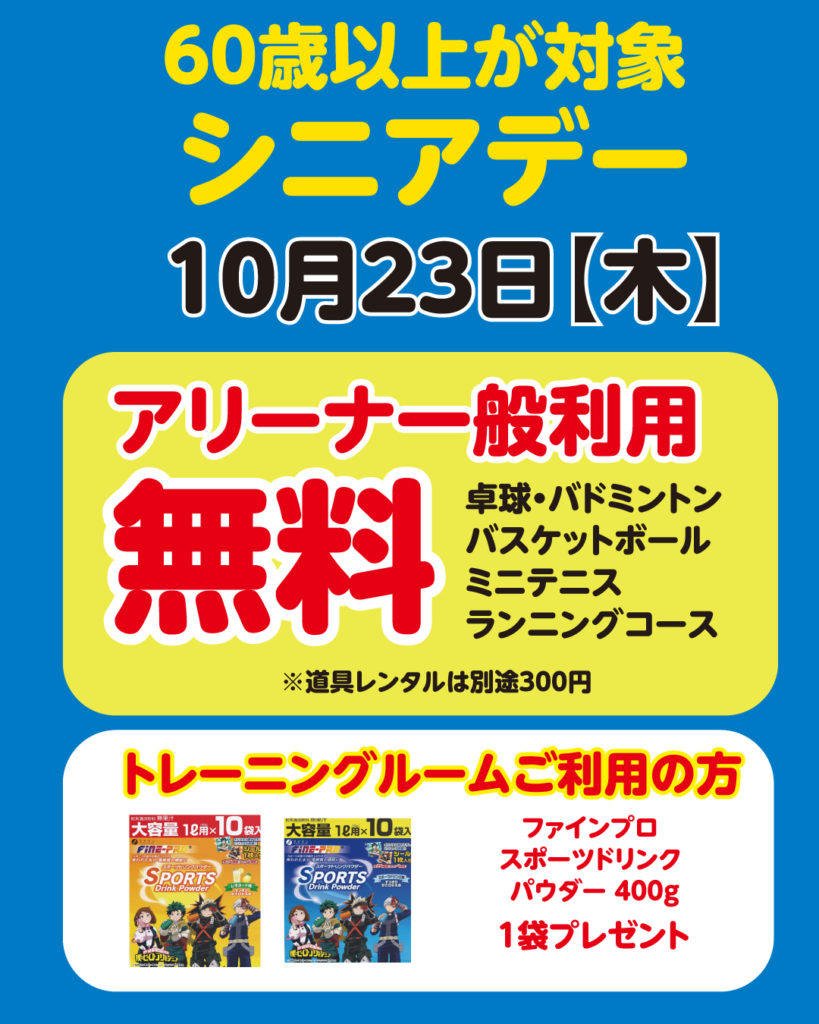 60歳以上の方は、アリーナ一般利用が無料!