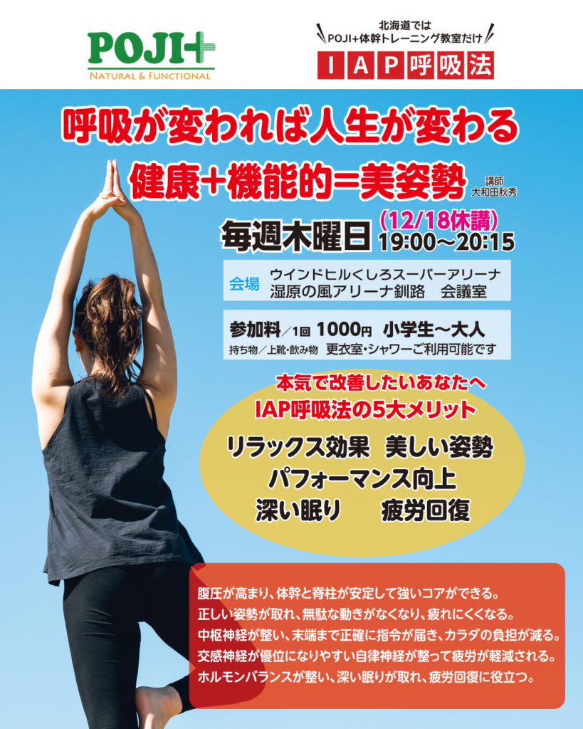 健康+機能的=美姿勢 IAP呼吸法は北海道ではPOJI+だけ!